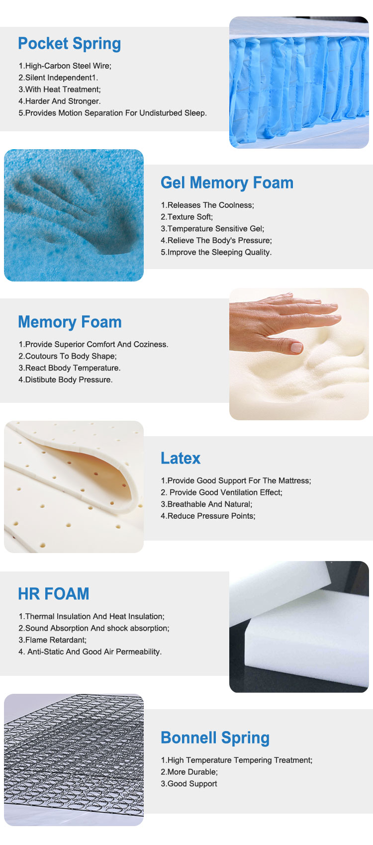 Pocket spring, foam,knit fabric