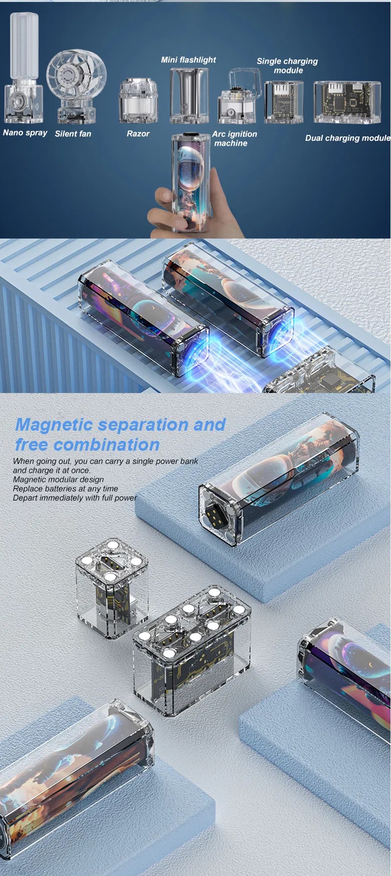 GL2666 13-in-1 Modular Magnetic Power Bank Camping Light & Cyberpunk Travel Essential Kit