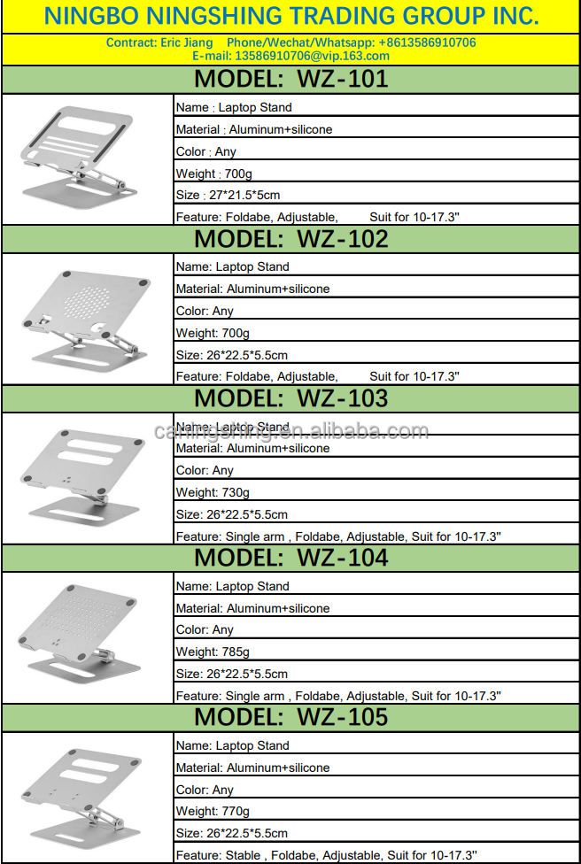 Adjustable 7 Angle Foldable Silvery laptop stand