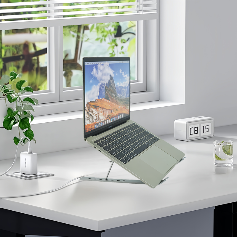 Adjustable 7 Angle Foldable Silvery Desktop Aluminum Laptop Stand Convenient Desktop Stand with Premium Comfort1
