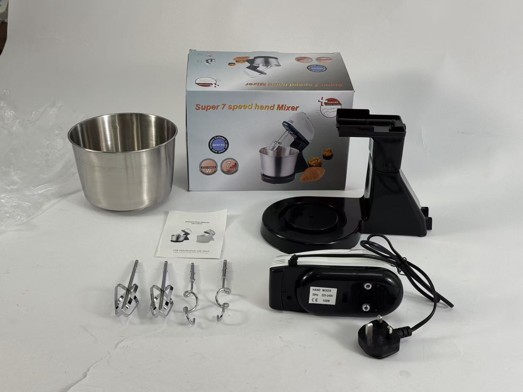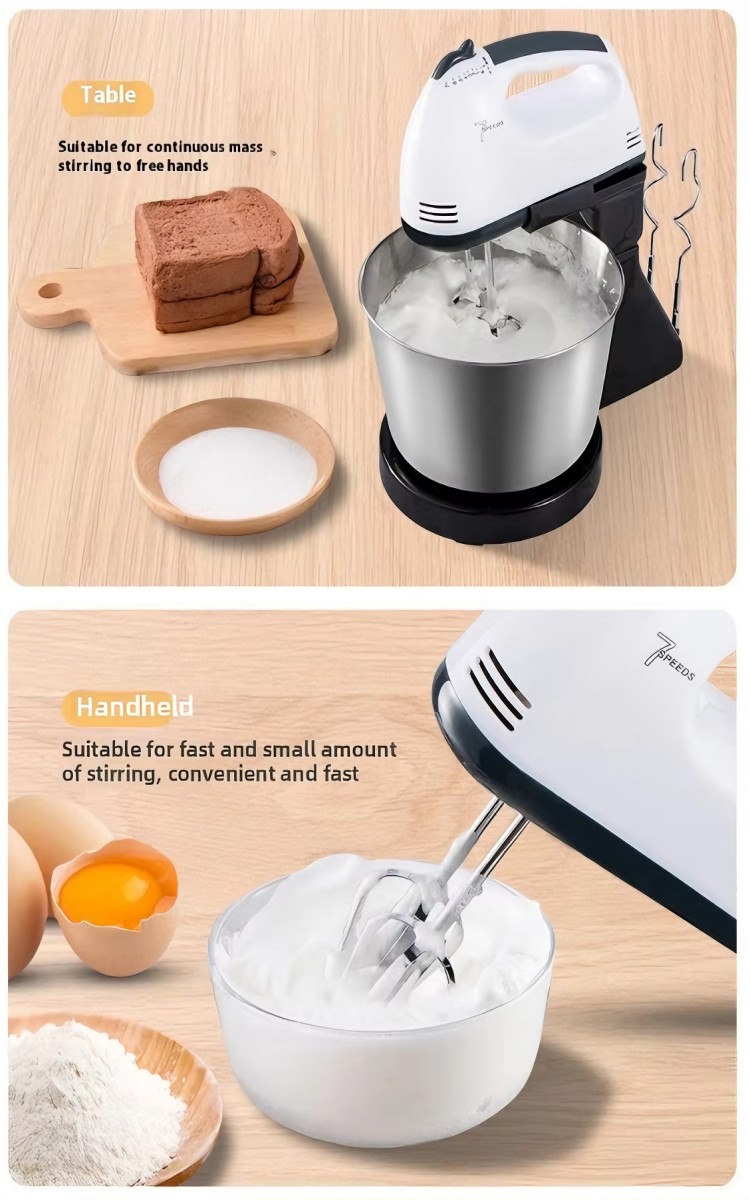 2026 New Cake Mixer Handheld Dough Mixer 7-speed Electric Egg Beater Kneading Stainless Steel High Capacity Household Dough Hook1