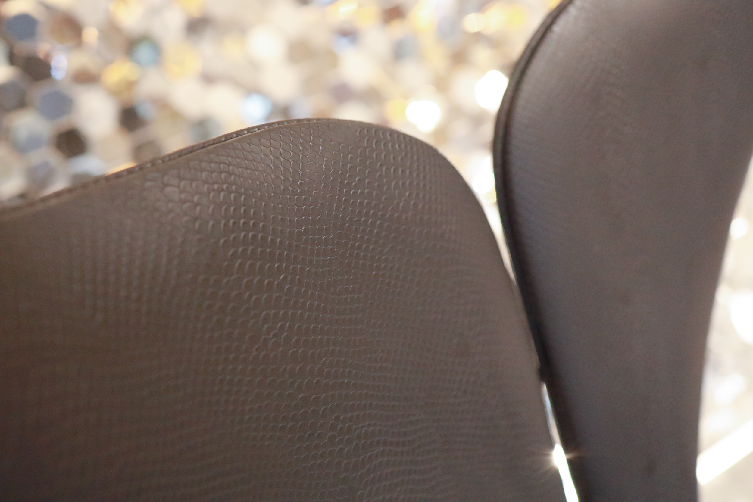 - Decorative Mirror Background: The chair is showcased against a captivating backdrop of mirrored panels, though this is for display purposes only. In actual use, the chair stands on its own as a statement piece.