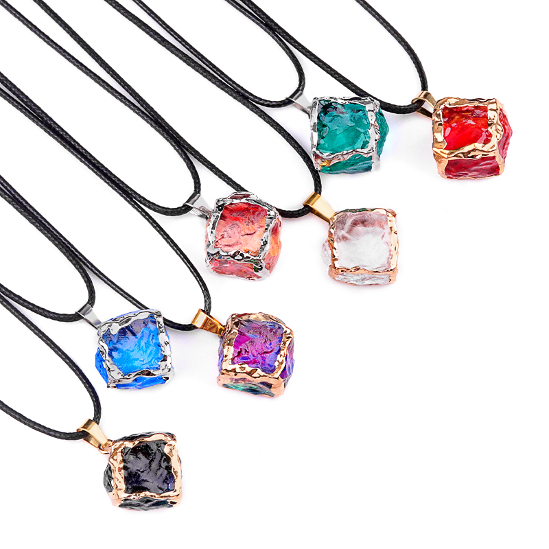 Glass Crystal 22mm Cube Pendant Gilded Gold Neckla