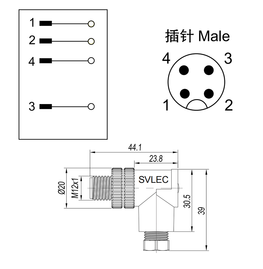 The M12 connector is made of M12 thread according to the IEC standard. The Right Angle Connector material is nickel-plated brass. The shell is made of IP67 PA66 reinforced nylon, and the tail is equipped with a locking seal. After locking, the protection can reach IP67, the applicable cable diameter is 4...6mm, the M12 Connector pin material is brass gold-plated, and the installation wiring is screw crimping, which is convenient and quick