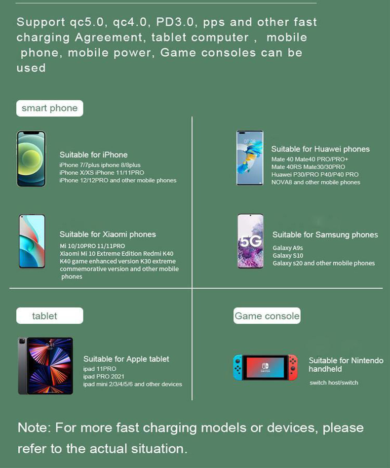 With the new generation technology GaN, the GaN charger is smaller than other phone charger, no matter where it is placed, only requires a small area, easy to carry. With PD3.0 port, plus GaN technology, charging efficiency is up to 92% and charging speed is three times faster. And also can adjust the voltage and current intelligently, according to your personal equipment to provide the appropriate voltage and current, protect your personal equipment, reduce damage.