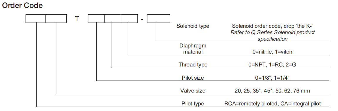 Ordering Code of T Series Diaphragm Pulse Valve: